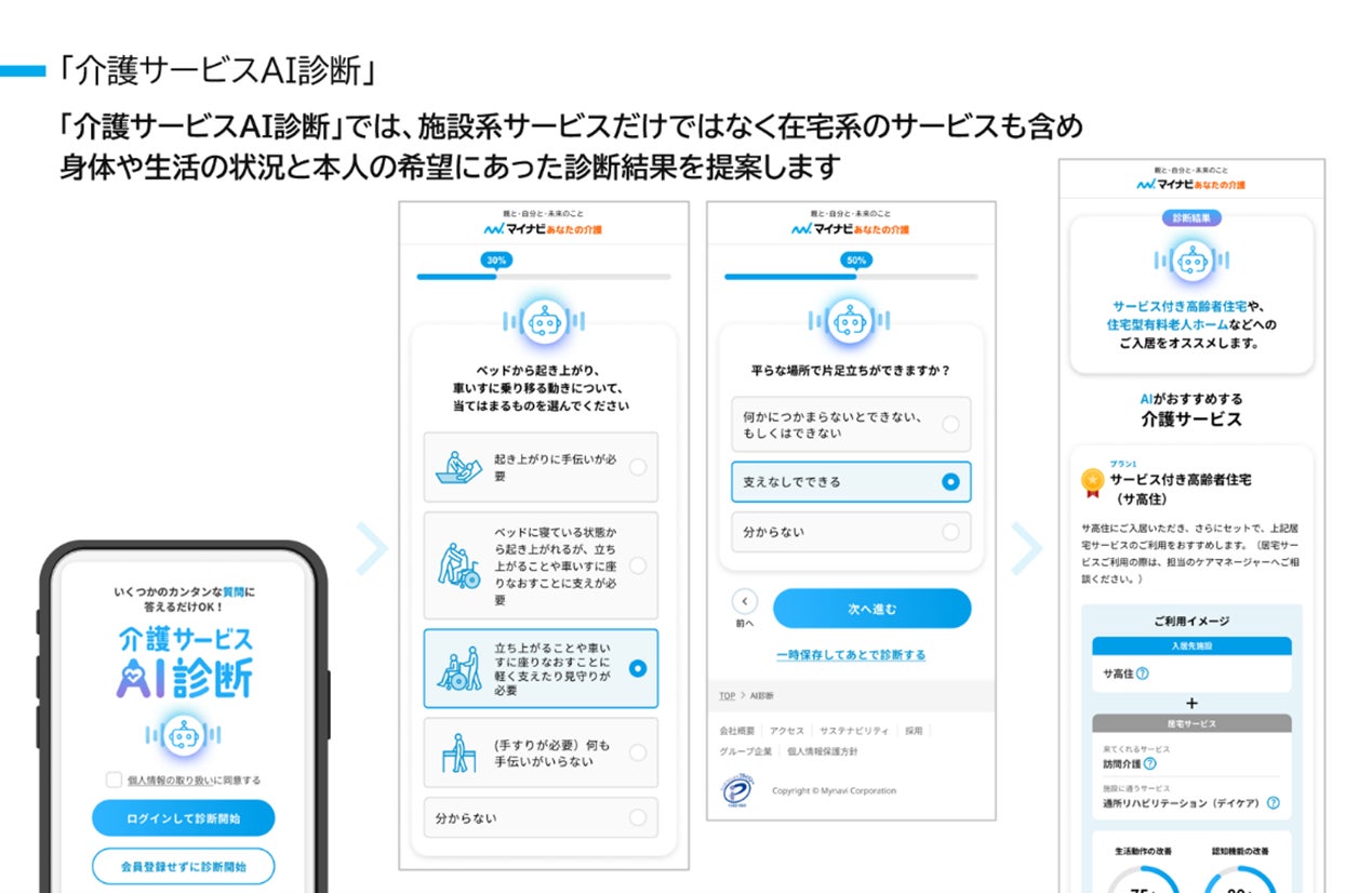 ◆「介護サービスAI診断」による介護施設種別・介護サービス選定サポート