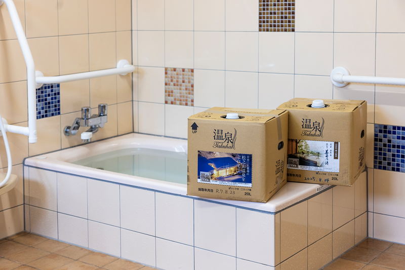 介護施設「ゆいまーる」では、全国の名湯を施設へ直送する温泉宅配サービスを導入。