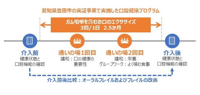 (*1)ガムを使用した口腔健康プログラム:ガム咀嚼を含むお口のエクササイズと通いの場を組み合わせた予防介入プログラム。