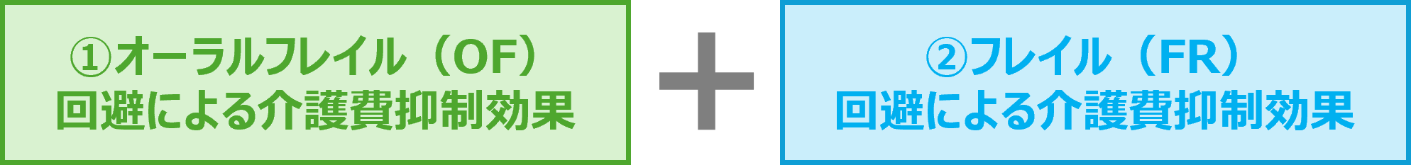 本プログラムの普及によって期待できる介護費抑制効果を、①オーラルフレイル(OF)回避および②フレイル(FR)回避それぞれについて試算しました。