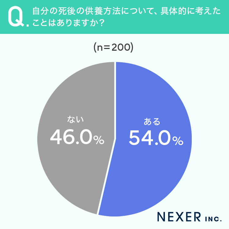 自分の死後の供養方法について「具体的に考えたことがある」と回答した方は54%と半数を超えました。