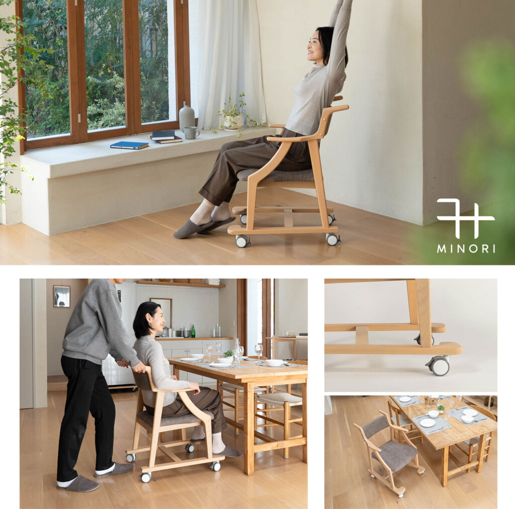使う本人はもちろん、介助する家族のことも考えた食卓椅子が誕生。『食を楽しむための椅子~みのり~』にサポートタイプが新登場!食事や食後の団らんを楽しむ基本設計に、移動や介助のしやすさをプラス
