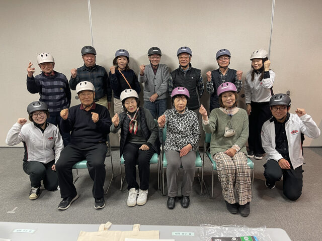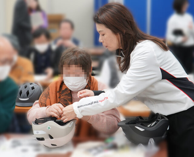 当社は、シニア向けに開発した自転車用ヘルメットを提供するとともに、着用の重要性を伝える講習を担当しました。(*SG 認証マーク製品・自社調べ)