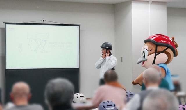 などについて説明を行い、シニア向け自転車用ヘルメット「HOCCO(ホッコ)」を紹介しました。