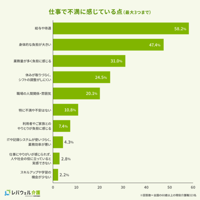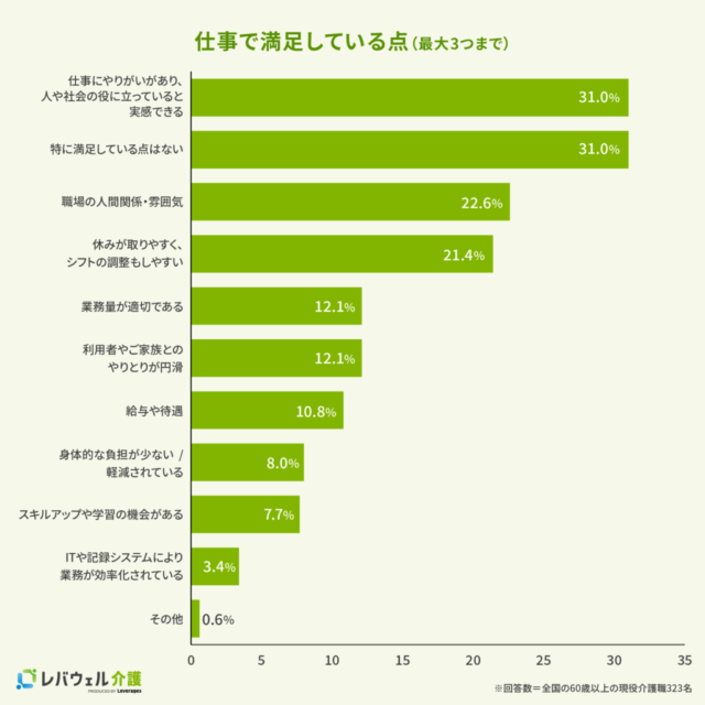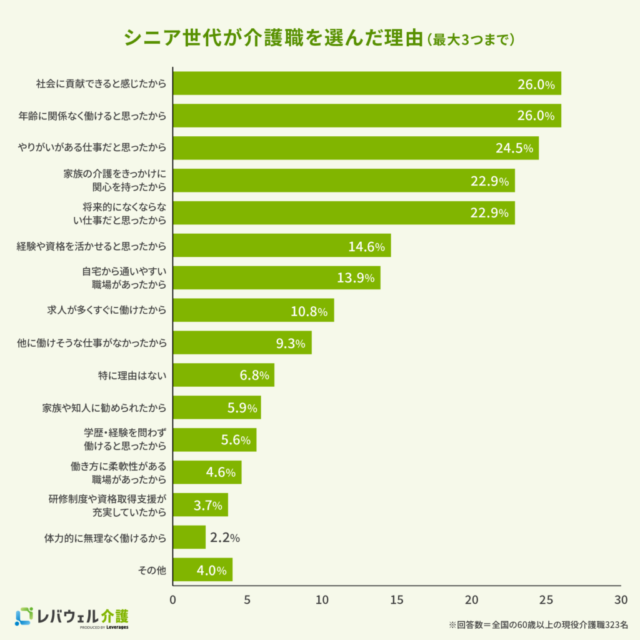 レバウェル株式会社( https://corp.levwell.jp/ )が運営する、介護職を対象とした求人・転職サービス「レバウェル介護」( https://job.kiracare.jp/ )は、全国の60歳以上の現役介護職323名を対象に、シニア世代 *1 の介護職の就業実態調査を実施しました。