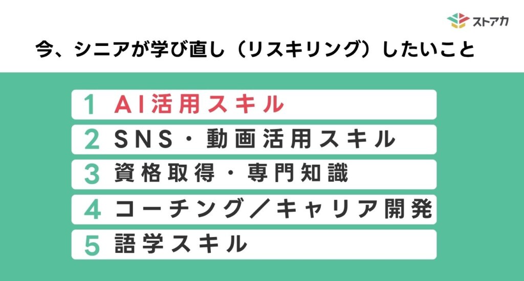 4.シニア世代の学び直しで最も人気の分野は「AI活用スキル」