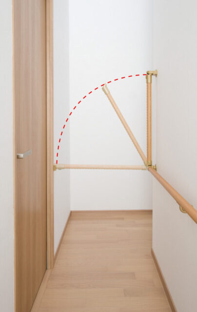 高齢者や障がい者にとって、自立した生活を送るためには、手すりが目的の場所まで連続していることが重要です。 当社の「遮断機式手すり」は、開口部の前や通路の横断など手すりが途切れてしまう箇所でも、開閉式にすることで行きたい場所まで手すりをつなげることを目指した製品です。