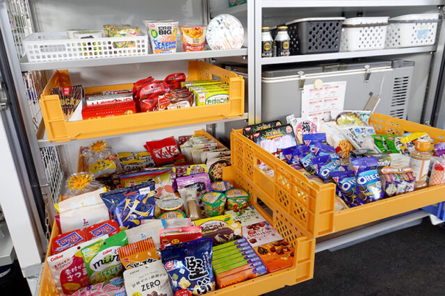 | 食品 | 弁当・おにぎり・サンドイッチ・パン・ベーカリー類・カップラーメン・冷凍食品(数量限定)・菓子・スナック・スイーツ |