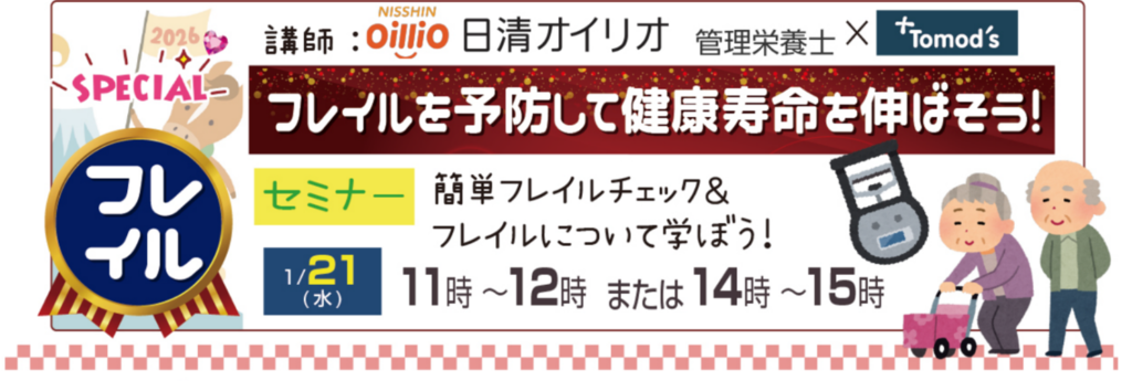 薬局トモズ練馬高野台店(ねりたかルーム) 1月21日 特別イベント「フレイルを予防して健康寿命を延ばそう!」【参加無料】