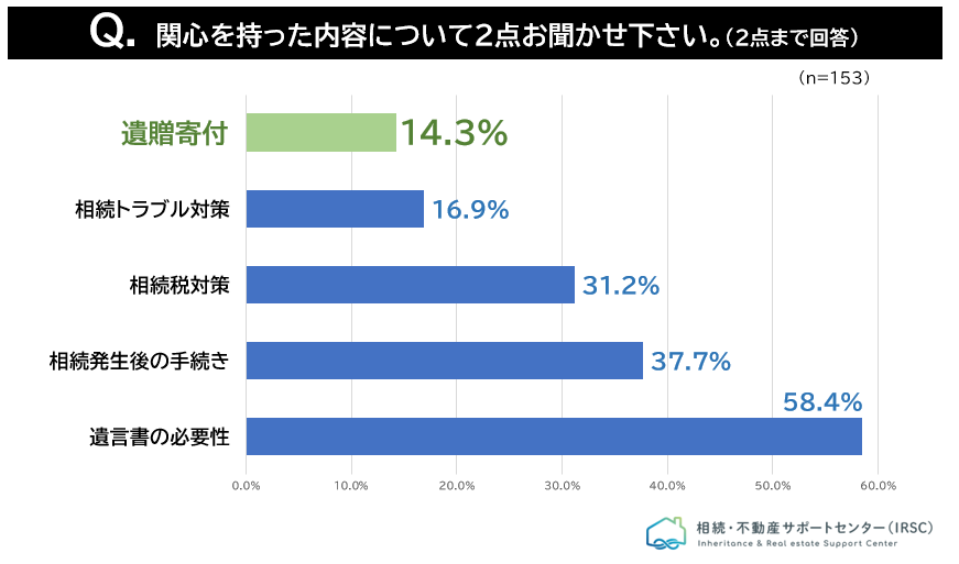 特筆すべきは、こうした実務的な備えと並行して、「遺贈寄付」への関心が14.3%に達している点です。これは、相続を単なる資産の引き継ぎ(防衛)としてだけでなく、自身の人生の証を次世代や社会へ「活かす」選択肢として捉える層が、一定数確実に存在することを示しています。
