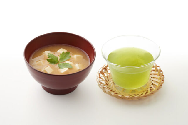 飲み物だけでなく食事にも!商品の使用イメージ みそ汁・お茶