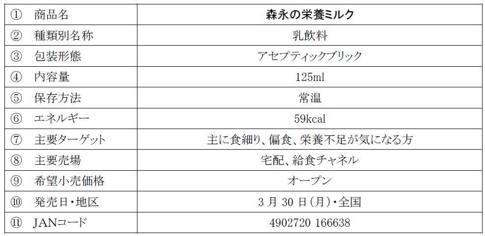 - ●牛乳1杯分以上のたんぱく質・カルシウムが摂取できる常温ミルクが新登場!「森永の栄養ミルク」宅配・給食チャネル限定で3月30日(月)より全国にて新発売