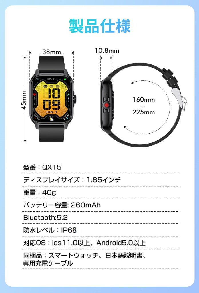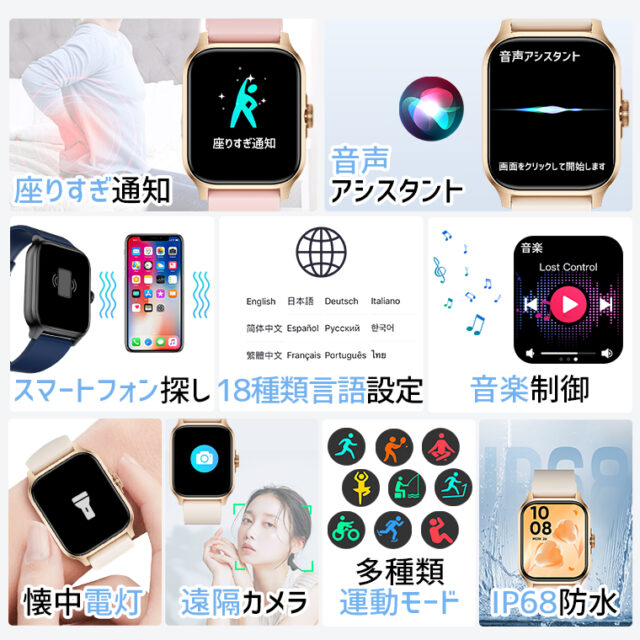 心拍数の測定、歩数計、睡眠記録などの機能を搭載。日々の活動量や睡眠状況を記録し、生活習慣の把握に役立つ情報を提供します。