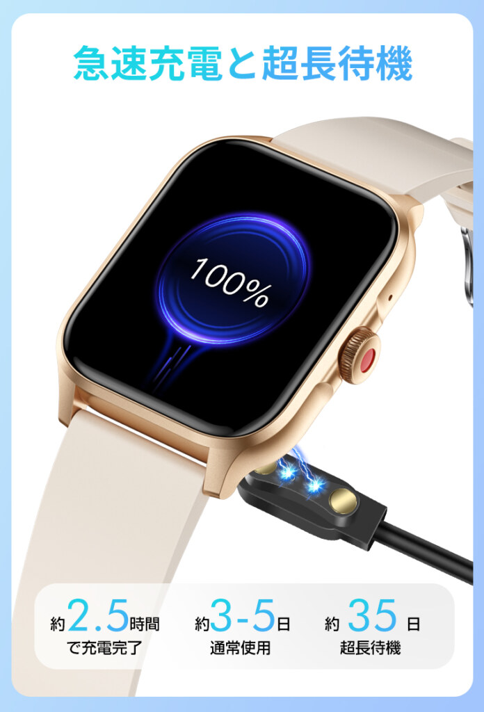 260mAh大容量バッテリー搭載によって、約2.5時間充電すれば最大35日使用可能です!