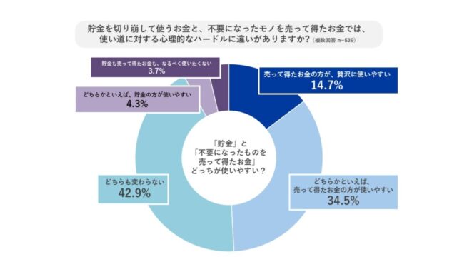 また、約半数(49.2%)が貯金を切り崩すよりも、「売って得たお金の方が贅沢に使いやすい」と回答しました。将来への備えである貯金とは異なり、不要なモノを売って得た資金の活用は心理的なハードルが低く、「趣味やレジャーを楽しむための資金」として捉えられ、再投資されやすいということがわかりました。