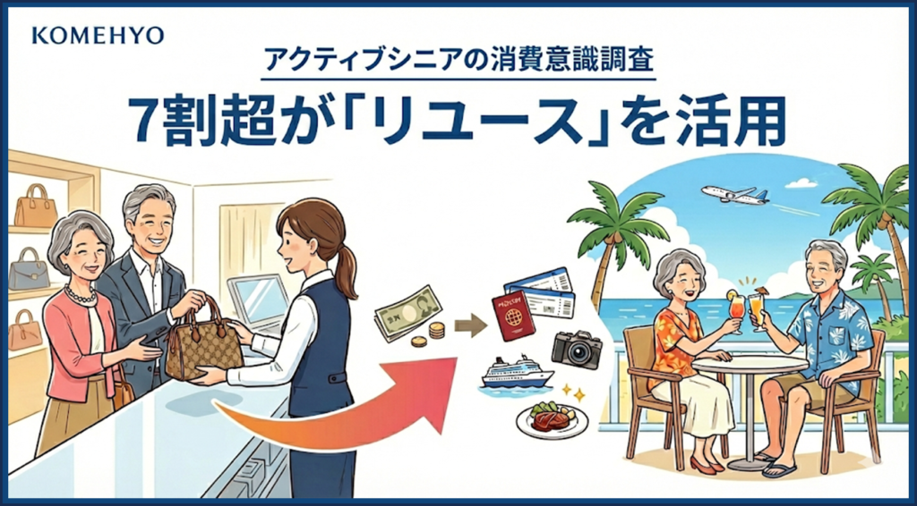 株式会社コメ兵(本店所在地:愛知県名古屋市、代表取締役社長:山内 祐也、以下「KOMEHYO」)は、全国65歳以上のアクティブシニア※男女554名を対象に消費行動に関する独自調査を実施しました。その結果、7割以上のアクティブシニアがリユースを活用していることに加え、モノを売って得た資金を「旅行」などの体験価値に再投資する、“循環消費”への意欲が高いことが明らかになりました。