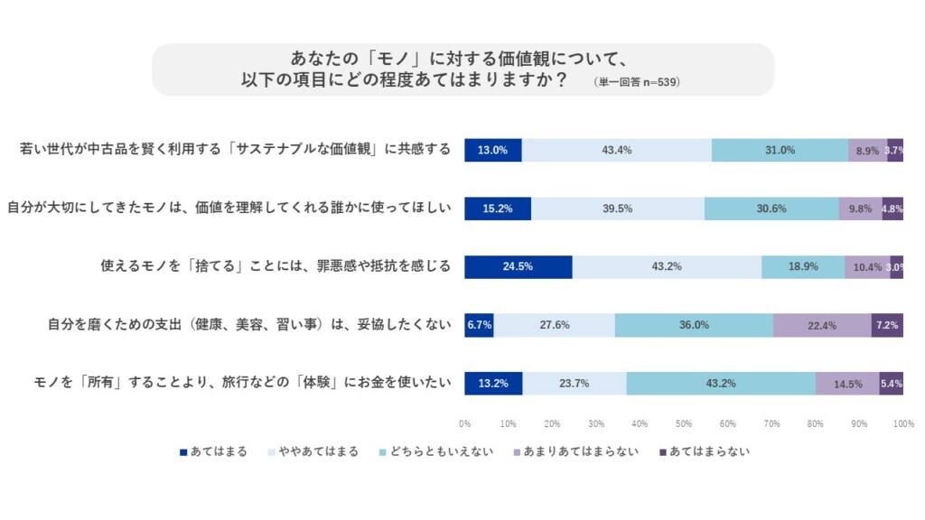 半数が「サステナブルな価値観」に共感し、多数が「モノを捨てずに次につないでいきたい」