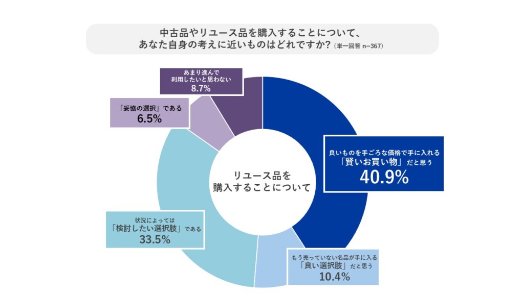 リユース品の購入について8割超が肯定的。「賢い買い物」と捉える傾向も